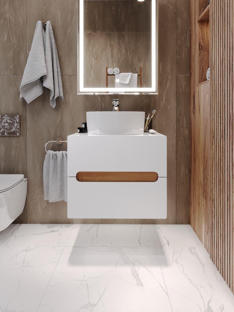 Чтобы купить Тумба под раковину “Round” подвес.,600_516_500, 2 ящ, МДФ белый глянец/ЛДСП Дуб Вотан оптом по цене 6380 руб., свяжитесь с поставщиком. Компания поставщик — Б2Б Фабрика (ИП «Дахневич С.В.») из города Москва. Доставка возможна самовывоз, транспортной компанией, автомобилем, курьером.