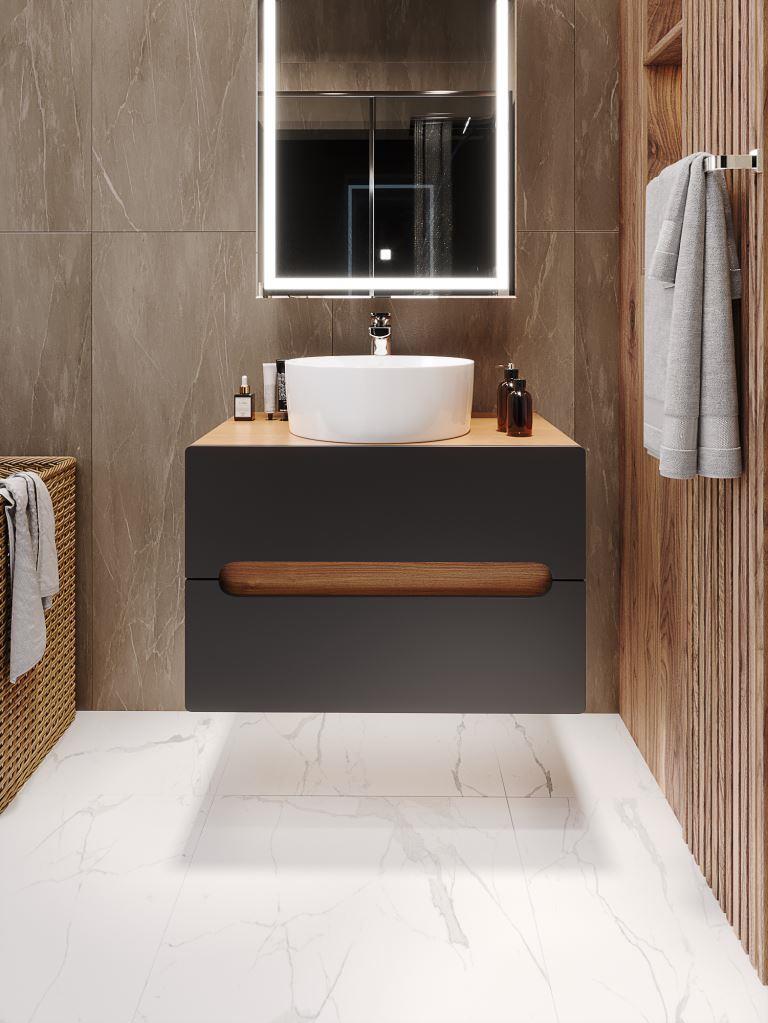 Чтобы купить Тумба под раковину “Round” подвес.,750_516_500, 2ящ , МДФ,графит софт/дерево_02809 оптом по цене 6840 руб., свяжитесь с поставщиком. Компания поставщик — Б2Б Фабрика (ИП «Дахневич С.В.») из города Москва. Доставка возможна самовывоз, транспортной компанией, автомобилем, курьером.