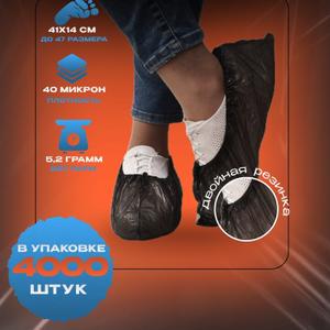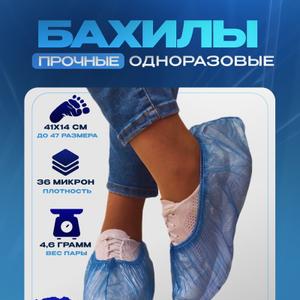 Толщина изделия: от 14 мкм. Размер: 41*14 см. (удлинённые), подходят до 47 размера. Товар и сырье сертифицировано. Имеется декларация на бахилы. Крупный опт обсуждается. Наличный и безналичный расчет (с НДС 20% и без НДС). Качество гарантируем. Будем рады сотрудничеству! Качество гарантируем.