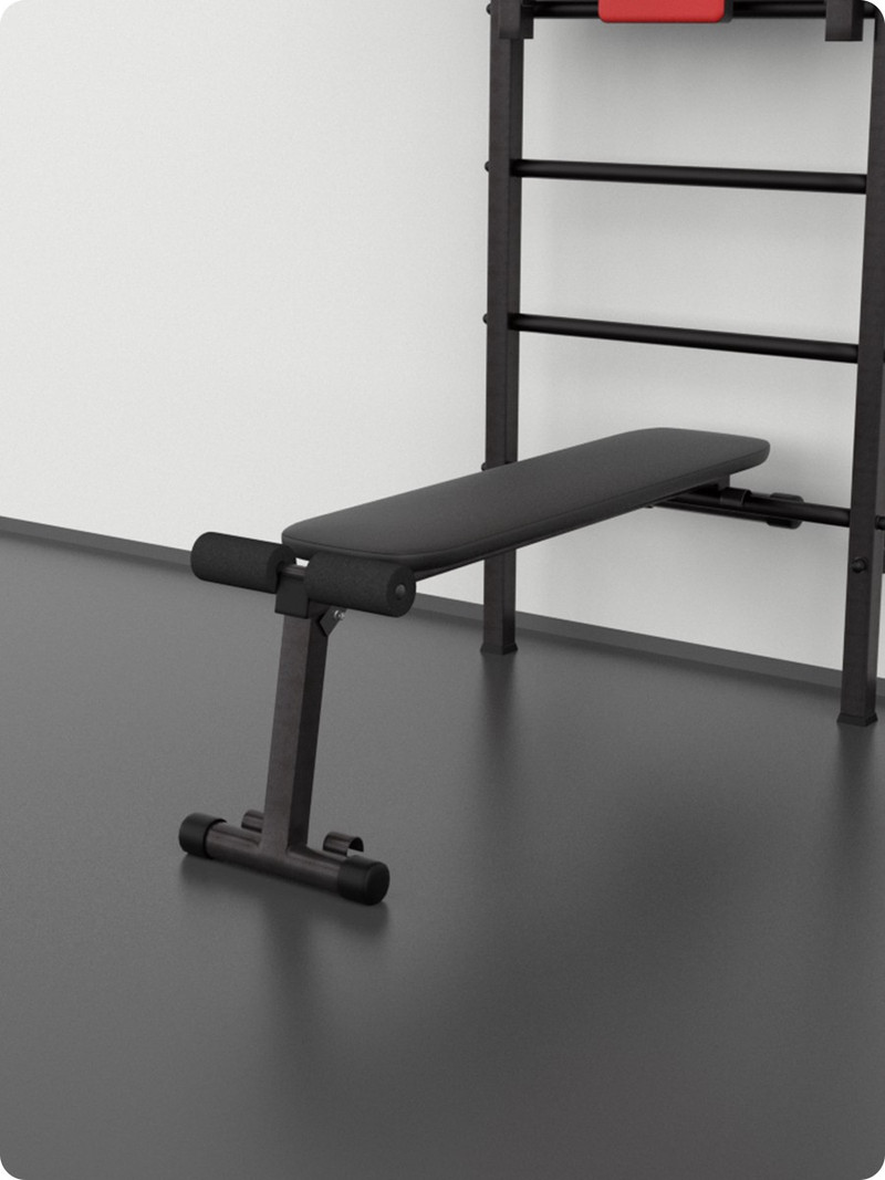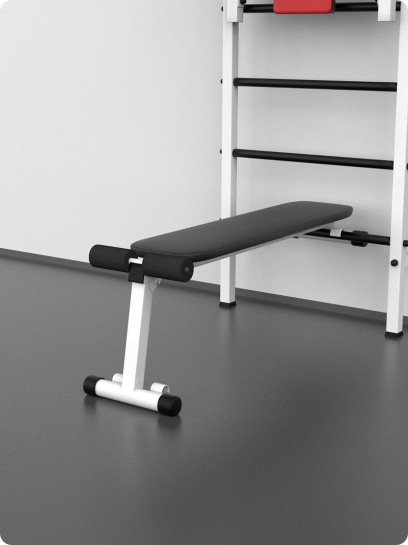 Скамья для шведской стенки устанавливается на шведской стенки как ровная или наклонная скамья. Ровная скамья — универсальный спортивный снаряд для силовых (и не только) упражнений, в наклонном положении скамья позволяет выполнять упражнения на пресс с регулировкой усилия через изменение угла наклона.