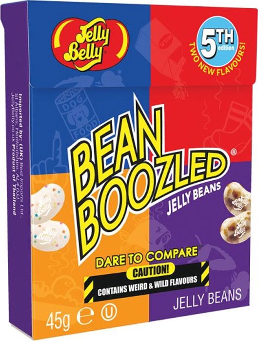 Играйте в Джелли Белли Бин Бузлд с друзьями и проверьте, кто из вас везунчик, а кто лузер! В каждой упаковке Bean Boozled содержатся по два типа драже одинаковых на вид, но совершенно разных на вкус.
