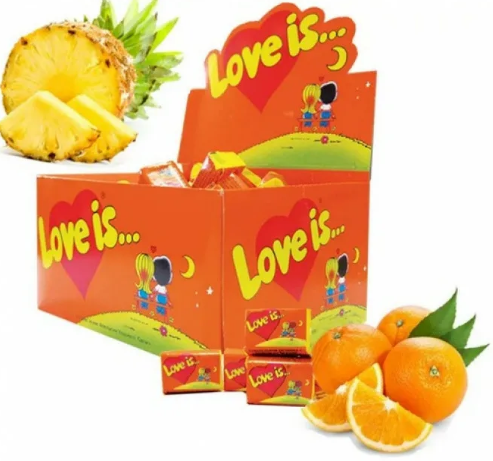 Love is - это турецкая жвачка, в обертке которой находятся вкладыши про любовь. Эта жвачка была популярна еще в 90-х годах, и по сей день не теряет своей популярности. Это не просто жевательная резинка, а культурное явление, знаковый продукт 90-х. Одна жвачка Love is способна перенести вас в мир детства, а история на вкладыше - подарить отличное настроение.
