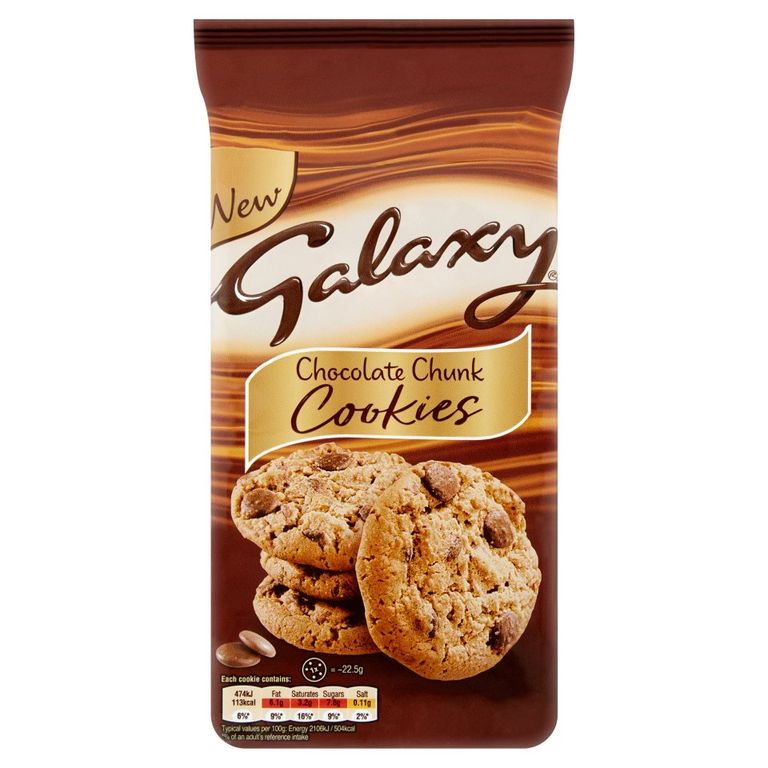 Печенье Гэлакси Чоколейт Чанкс Кукис 180 гр - вкусное угощение в небольшой упаковке, в которой содержится 8 хрустящих бисквитов, приготовленных с добавлением кусочков знаменитого молочного шоколада Гэлакси. Отличающееся максимально натуральным составом, оно подойдет в том числе и для детского питания. Богатый калориями десерт поможет утолить голод, а компактная упаковка позволит взять печенье Гэлакси с собой, отправляясь на пикник или в поездку.