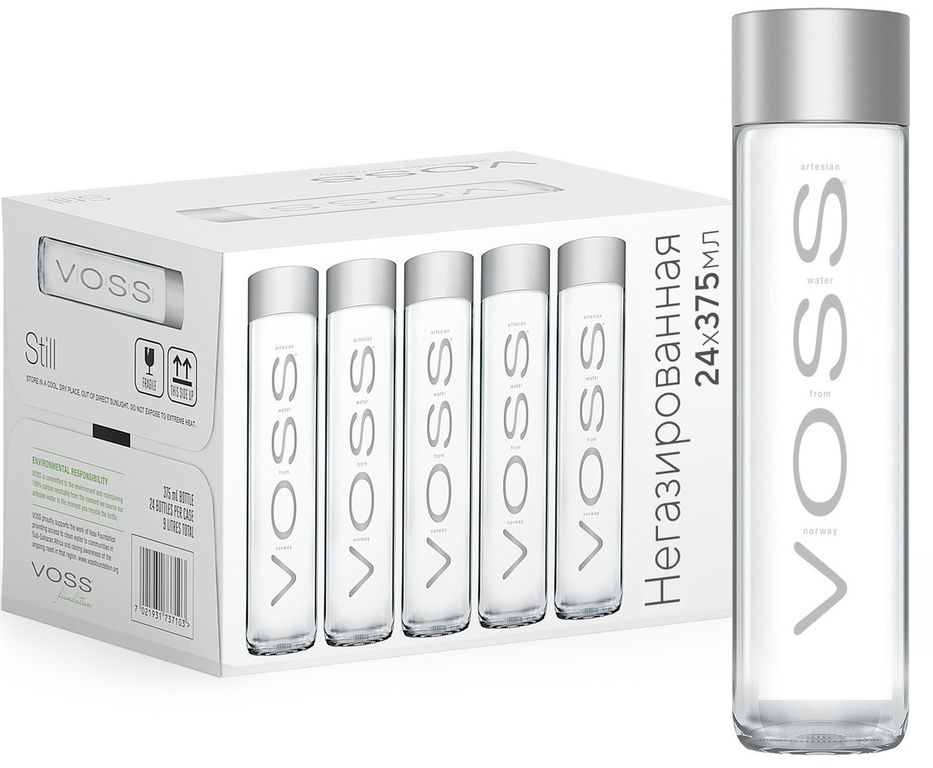 Voss рождается в удивительной красоте артезианских источников на юге Норвегии — там, где никогда не было вредных производств и какой-либо промышленности, а воздух совершенно чист. Источник был скрыт в течение многих столетий под скалами и льдом в нетронутой дикой местности. Дизайн бутылки создан бывшим арт-директором Calvin Klein Нейлом Крафтом. При добыче воды не используются насосы, выкачивающие воду из скважины: вода находится под таким давлением, которое позволяет ей самой подниматься на поверхность. Благодаря низкой минерализации, Voss - одна из чистейших вод в мире, а вкус воды - несравненно мягкий. Voss — выбор многих знаменитостей, кулинаров и винных гурманов по всему миру. Общая минерализация 45–55 мг/л.