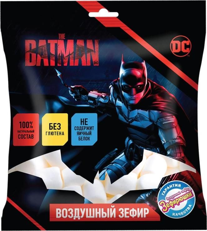 Порадуйте своих маленьких любителей супергероев воздушным зефиром “Batman”! Этот вкусный и красочный десерт обязательно понравится каждому маленькому супергерою. Каждая зефирка имеет форму любимого героя - Бэтмена, что делает их еще более привлекательными для детей. Изготовленные из высококачественных и безопасных ингредиентов, они обладают нежной текстурой и изумительным вкусом. Идеальный выбор для перекуса, полдника или украшения других десертов. Возьмите с собой упаковку воздушного зефира “Batman” и наслаждайтесь вкусом вместе с друзьями или семьей.