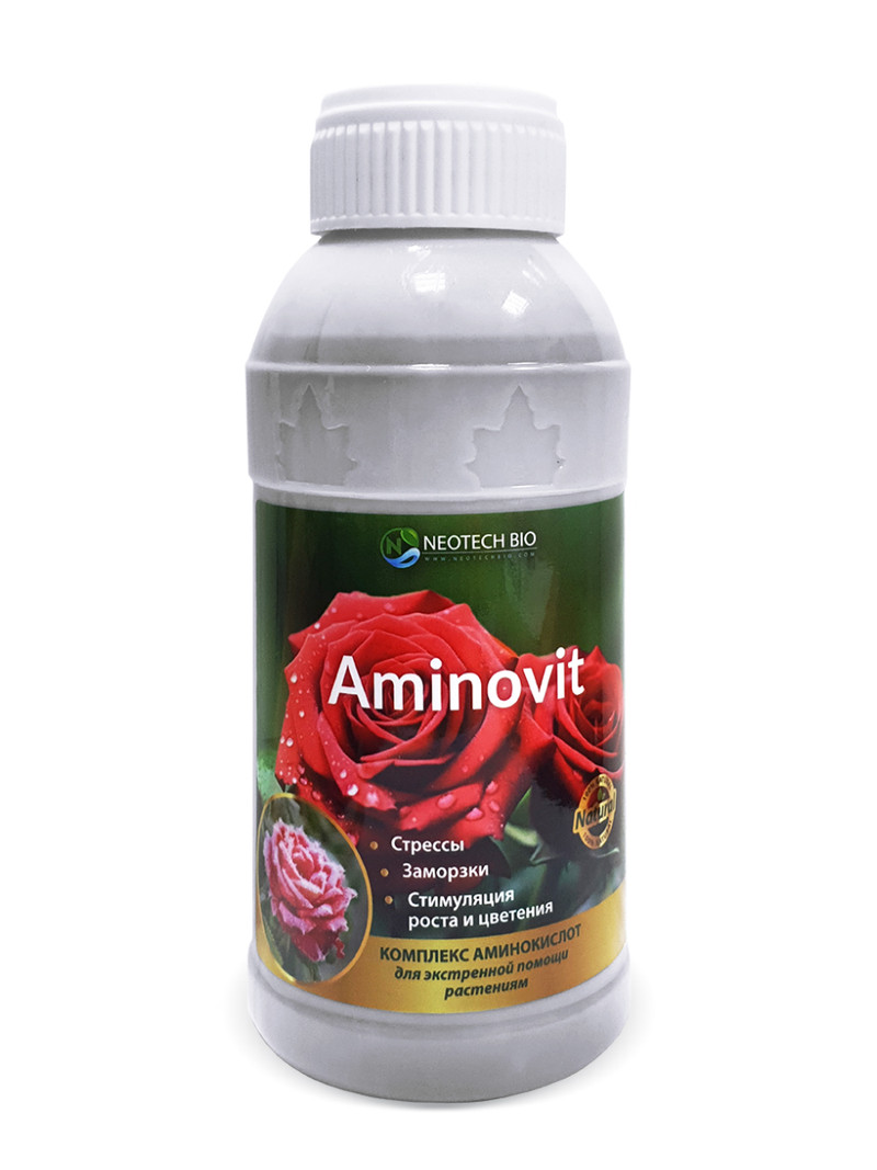 Аминовит — это сбалансированная смесь более 20 аминокислот и комплекса фитогормонов из морских водорослей. Активирует процессы роста и устойчивость растений к сильным стрессам, стимулирует цветение. Повышает способность к фотосинтезу. Эффективен для восстановления растений после заморозков и других неблагоприятных условия внешней среды.