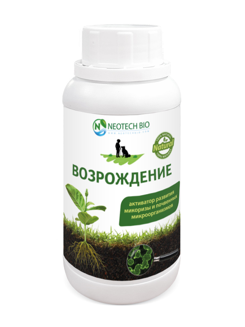 “ВОЗРОЖДЕНИЕ” Активатор развития микоризы и почвенных микроорганизмов. Концентрат сигнального вещества взаимодействия “растение-микроорганизм”. Увеличивает активность и популяцию полезных микроорганизмов, в т.ч. микоризных грибов. Пробуждает и активирует “спящие” микроорганизмы в почве, восстанавливает микробиологическое разнообразие, возрождает микробную активность обедненных почв. Рекомендуется для истощенных или обедненных почв. Способ применения: Использовать препарат при температуре выше +14С, оптимальная температура 24-26С. Лучше использовать после дождя или интенсивного полива. 3 раза в течение сезона: ранней весной до посева, после появления всходов, осенью после сбора урожая. Приготовление рабочего раствора: 8-16 мл/10 л. воды (0,08-0,16% раствор). Расход рабочего раствора 40-50 мл/1 кв.м. (400-500 л/га). Готовый раствор наносится на поверхность почвы после перекопки или в корневую зону деревьев и многолетних кустарников.