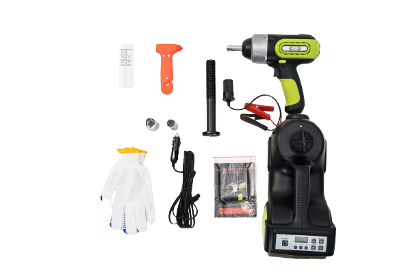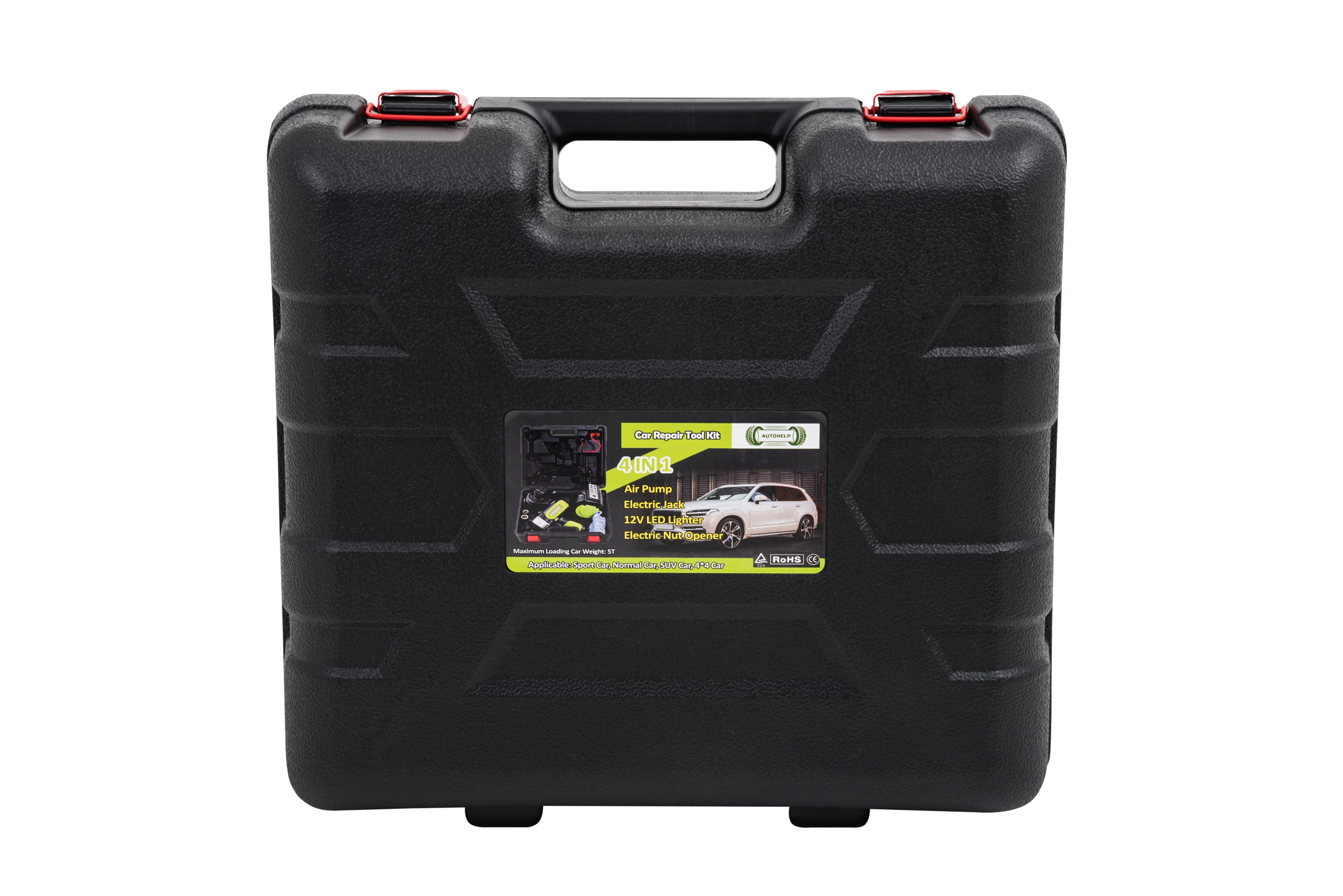 Набор 4 в 1: Электрический автомобильный домкрат с гайковёртом и насосом в чемодане “AutoHelp”