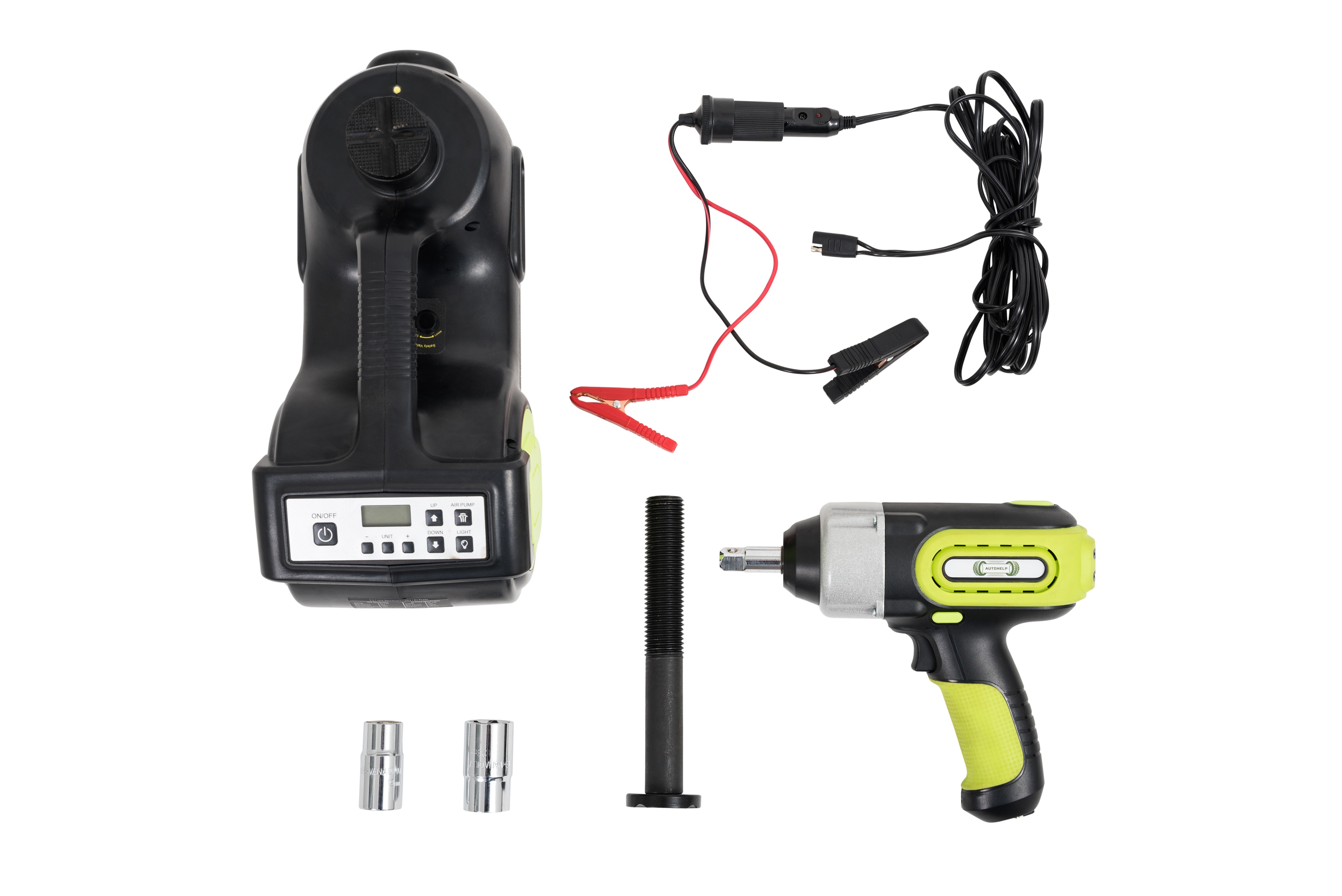 Автомобильный набор состоит из электрогидравлического домкрата, гайковерта и компрессора. Домкрат позволяет поднимать грузы весом до 5 тонн на высоту 155 - 530 мм. Встроенный компрессор предназначен для подкачки шин легковых автомобилей всех типов. Ударный гайковерт позволяет быстро производить монтаж и демонтаж соединений, и замену колес без особых усилий. Питание возможно от прикуривателя, от клемм АКБ. Многофункциональный набор подходит для самостоятельного обслуживания авто. Набор складывается в удобный прочный кейс со светоотражающими элементами - мы продумали элемент безопасности, особо важный в дороге.