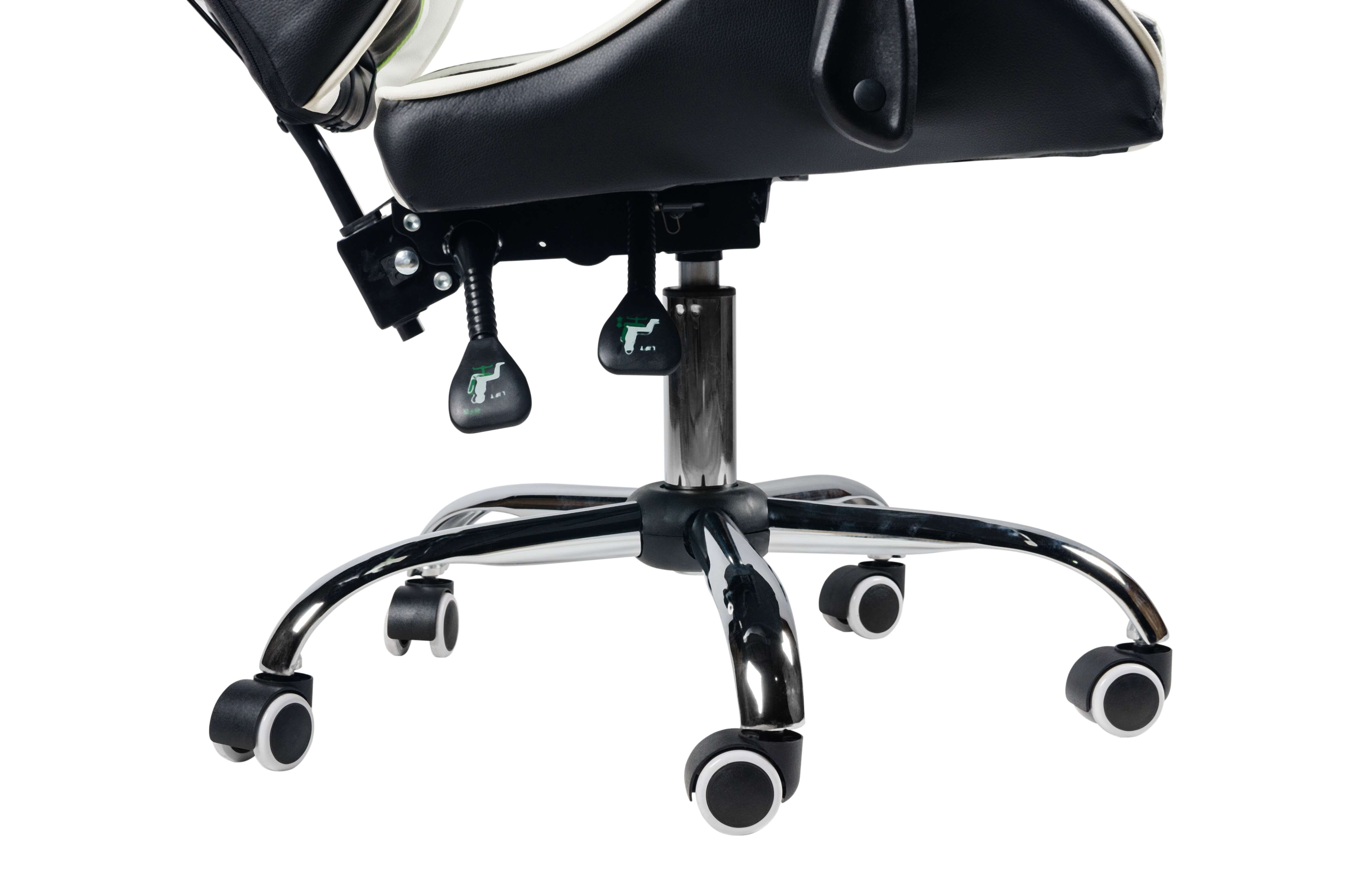 Вибромассажная подушка под поясницу Простое управление с помощью пульта. Эргономичная спинка Спинка с регулируемым углом наклона Спинка и сиденье из высококачественной экокожи Регулируемое по высоте сиденье (механизм газлифт) Широкие, мягкие подлокотники Удобный подголовник Мягкая подушка под шею Фиксация в вертикальном положении Фиксация спинки в нужном наклоне Колесики подходят для всех типов половТехнические характеристики