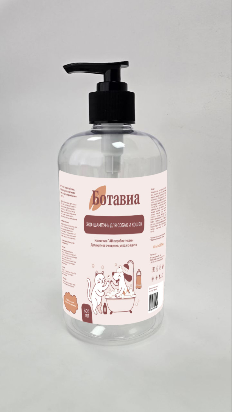 **Применение: **развести необходимое количество шампуня в тёплой воде в соотношении 1:3 или вспенить в руках. Нанести на влажную шерсть, вспенить массажными движениями. Смыть тёплой водой. После шампуня рекомендуется использовать бальзам Ботавиа.
