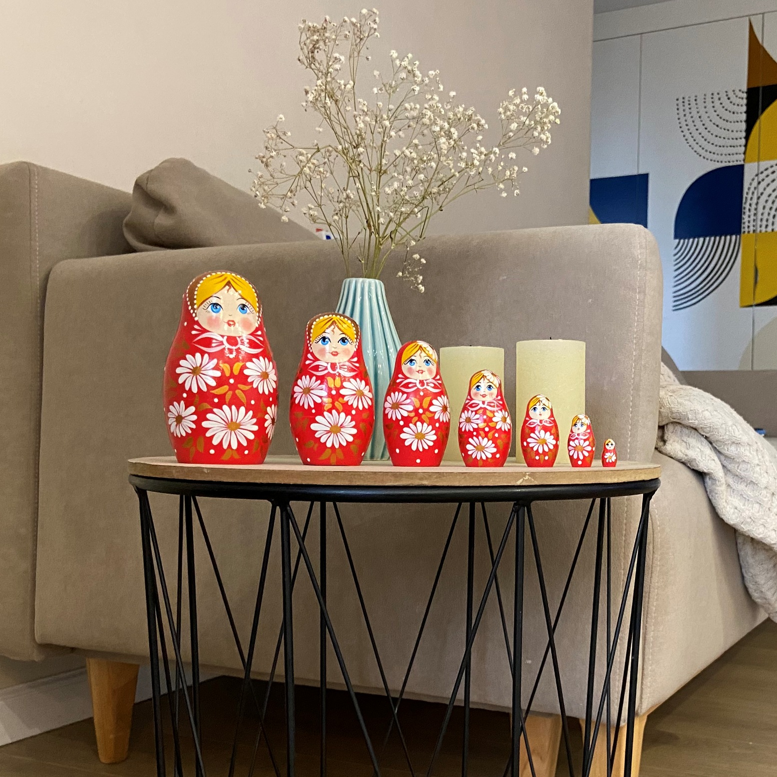 • ВЕЛИКОЛЕПНЫЙ ДИЗАЙН: Красотка в красном наряде и расписанными вручную ромашками• ЭКОЛОГИЧЕСКИЕ МАТЕРИАЛЫ И ВЕРНОСТЬ ТРАДИЦИИ РОСПИСИ: натуральное дерево, краски и лак на водной основе• УНИКАЛЬНЫЙ ПОДАРОК: оригинальный предмет декора для гостиной, спальни, детской, а также для офиса, салона• ИДЕАЛЬНЫЕ РАЗМЕРЫ: высота самой большой матрешки 13.5 см, самой маленькой - 2 см.