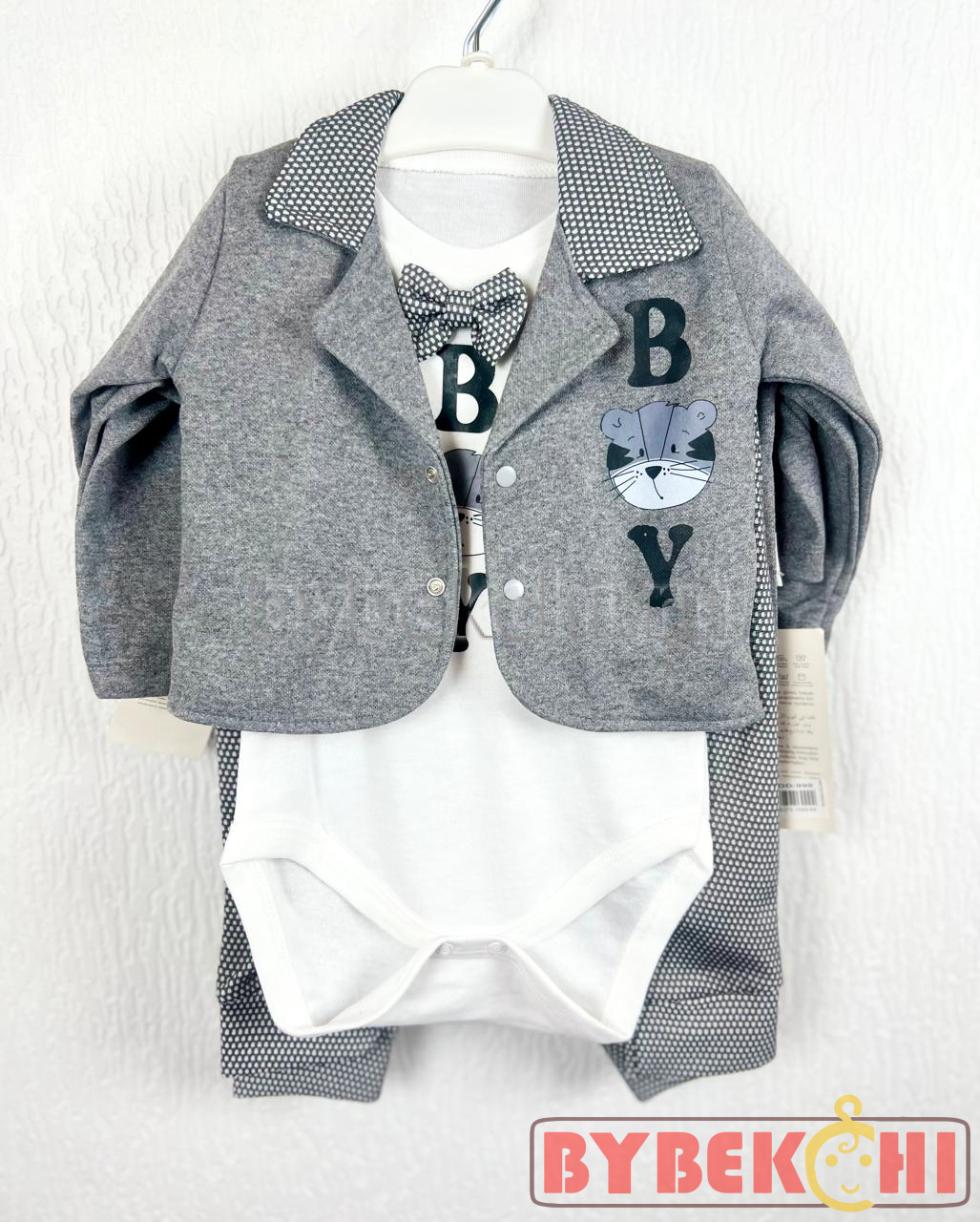 Элитный Комплект “Первые Объятия” для Новорожденных из 3 Предметов (Боди, Штанишки, Пиджак) – Турецкое Качество, Опт