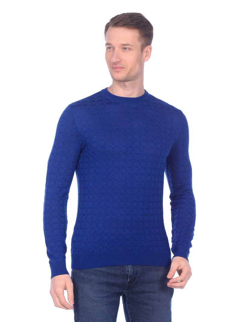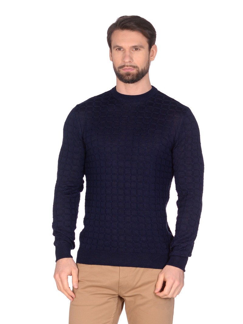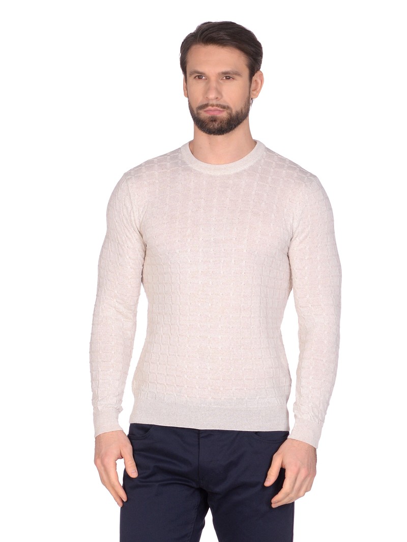 Джемпер мужской, однотонный полуприлегающего силуэта. Структурная вязка “Шашки”