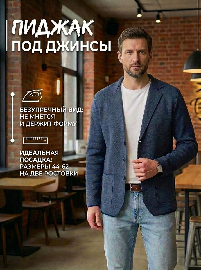 Выбирая этот трикотажный пиджак, вы делаете ставку на качество и стиль. Он не только подчеркнет ваш вкус, но и позволит вам выглядеть уверенно в любой ситуации. Стильный, легкий и комфортный — пиджак под джинсы станет вашим надежным спутником в повседневной жизни и особых моментах. Сделайте свой выбор и наслаждайтесь безупречным стилем каждый день!