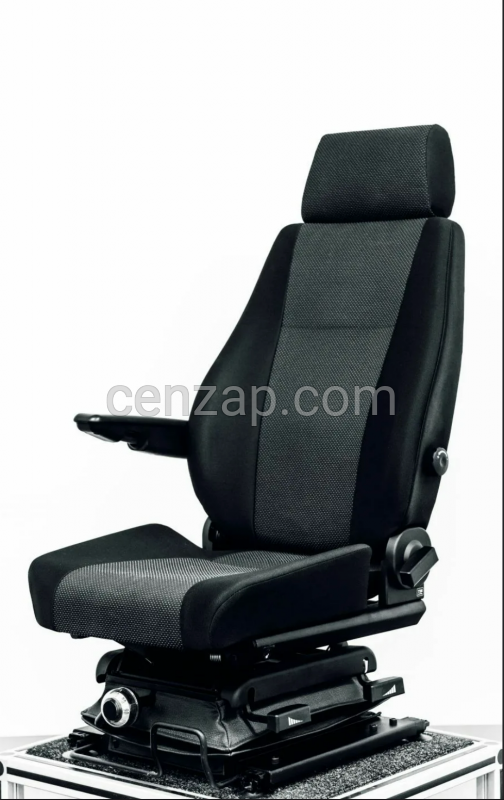 Сиденье водителя Газон NEXT (база + правый подлокотник + подогрев + поясничный подпор) на механической подвеске, без ремня безопасности, с тканевой обивкой, регулировкой угла наклона сиденья, регулировкой угла наклона спинки, съемным подголовником, регулировкой по весу водителя, регулировкой по высоте, блокировкой подвески, с правым подлокотником, поясничным подпором, подогревом подушки и спинки.