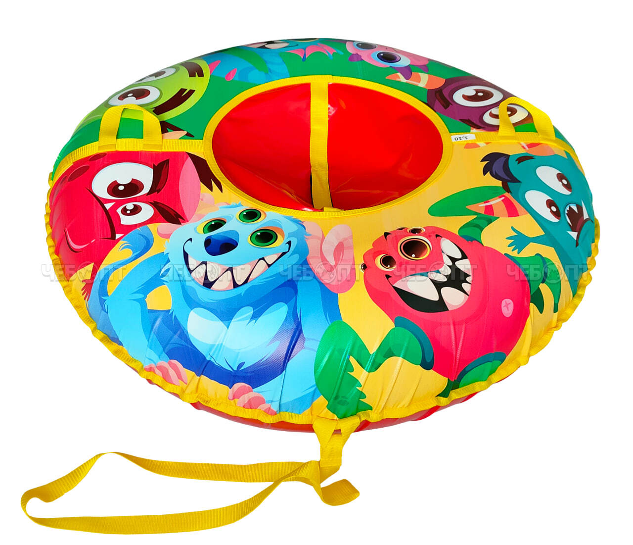Торгово-производственная компания ЧЕБОПТ продает Санки-ватрушка (тюбинг) СКОЛЬЗЯШИ МОНСТРИКИ на молнии D-0,85м С РИС (верх БАНЕР+низ ТЕНТ ПВХ 550 гр/кв.м, усилен камера) ДО 75 кг [1] МПС СобПр. Информация по приобретению товара - .
