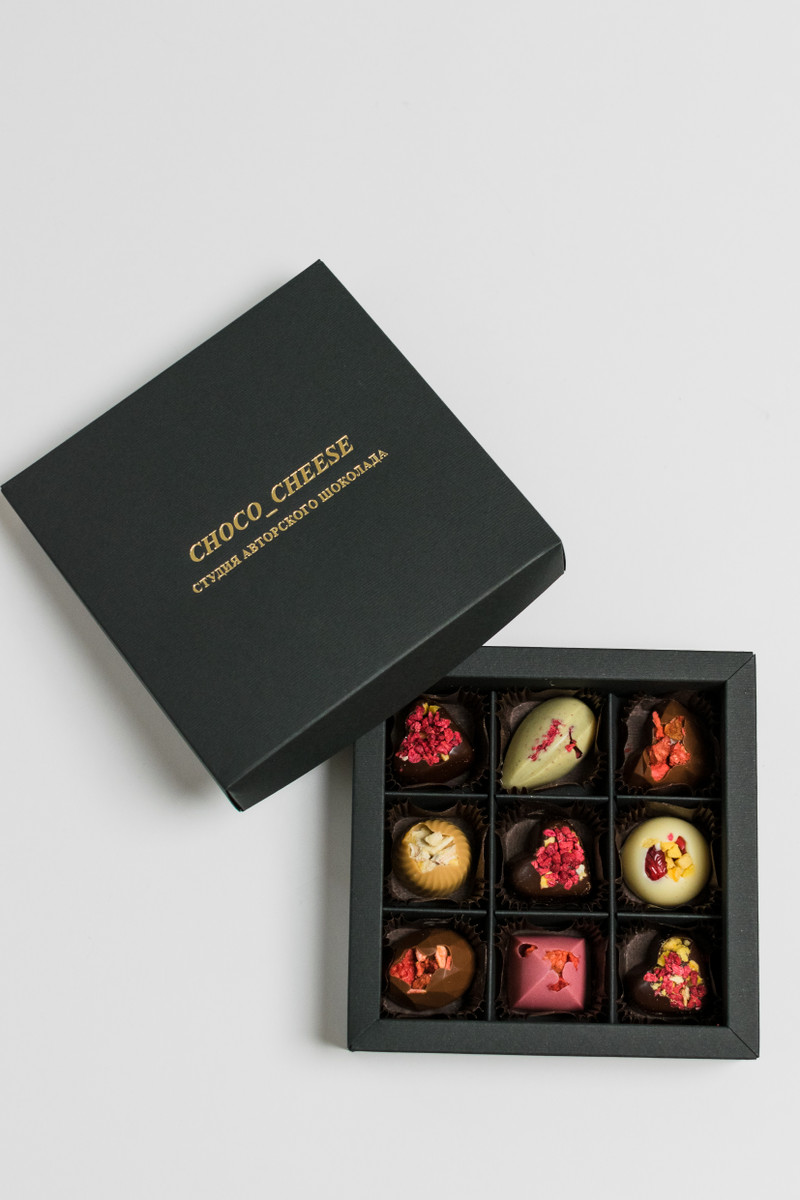 Подарочные конфеты ручной работы, коробка на 9 конфет ассорти.