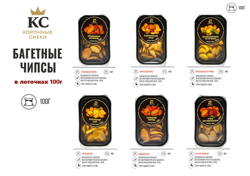 Гренки “Багетные чипсы” Камчатский краб 100 гр. (белый хлеб, нарезка слайс)