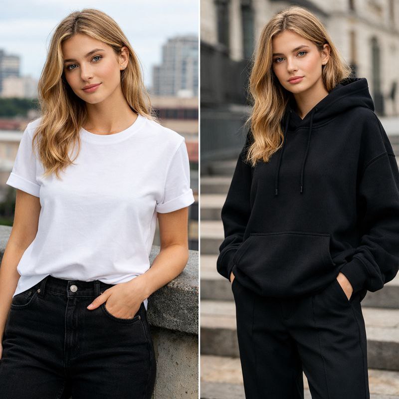 Базовый комплект: белая футболка и чёрное худи из натуральных тканей — минимализм и комфорт 🤍🖤