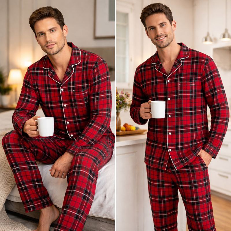 Мужская пижама в красную клетку из натуральных тканей — комфорт и стиль для дома ️
