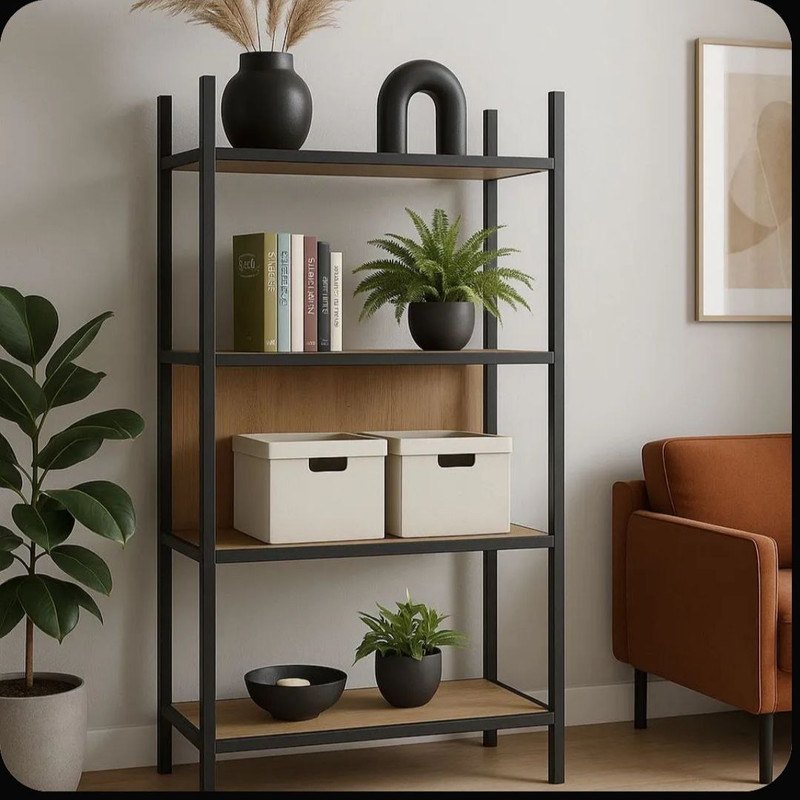 Стеллаж на металлических опорах, качественная покраска, материал и упаковка.