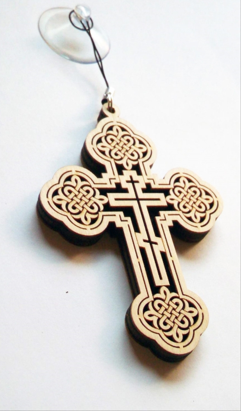 Украсьте салон вашего автомобиля этим красивым крестиком, выполненным из двух слоев березовой фанеры. На лицевой стороне крестика присутствует изящный орнамент, а на оборотной важная надпись:“Спаси и Сохрани”.Надежная присоска позволит легко закрепить его на лобовом стекле или другой гладкой поверхности. Прекрасный способ добавить духовности и уюта в вашу машину.