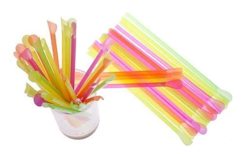 Трубочки д/коктейлей с ложечкой неон/100