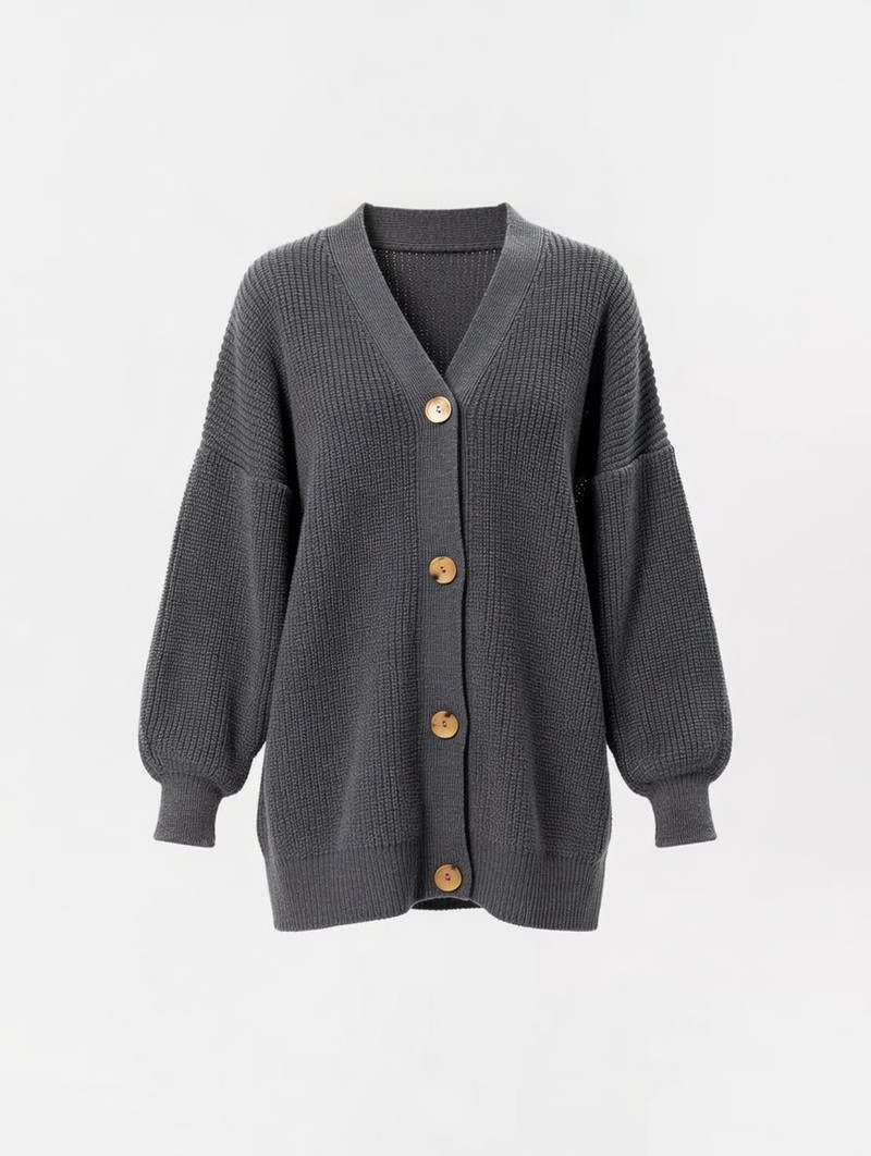 Тёплый, мягкий, стильный oversize-кардиган из плотной вязки.