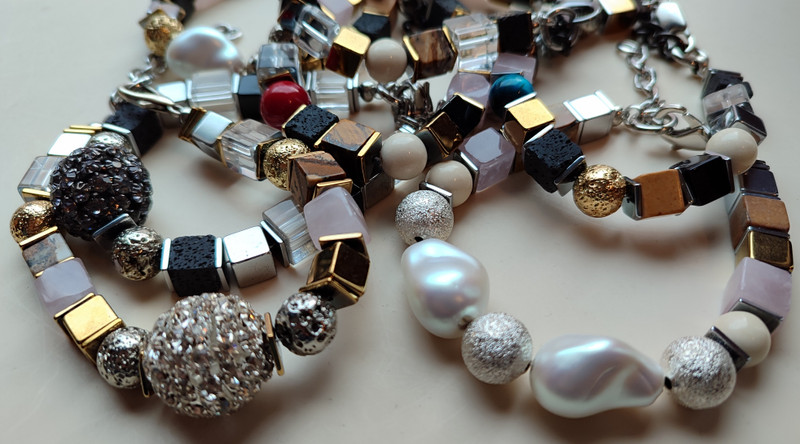 Так же занимаюсь изготовлением украшений с камнем, жемчугом, кораллом и т. д. — браслеты, колье, чокеры, кулоны. Открыт для сотрудничества с салонами, бутиками, магазинами, оптовиками и мастерскими по сборке бижутерии и т. д., Могу делать и полностью изделие и какие либо декоративные части, всё обсуждается. Нахожусь в Москве.