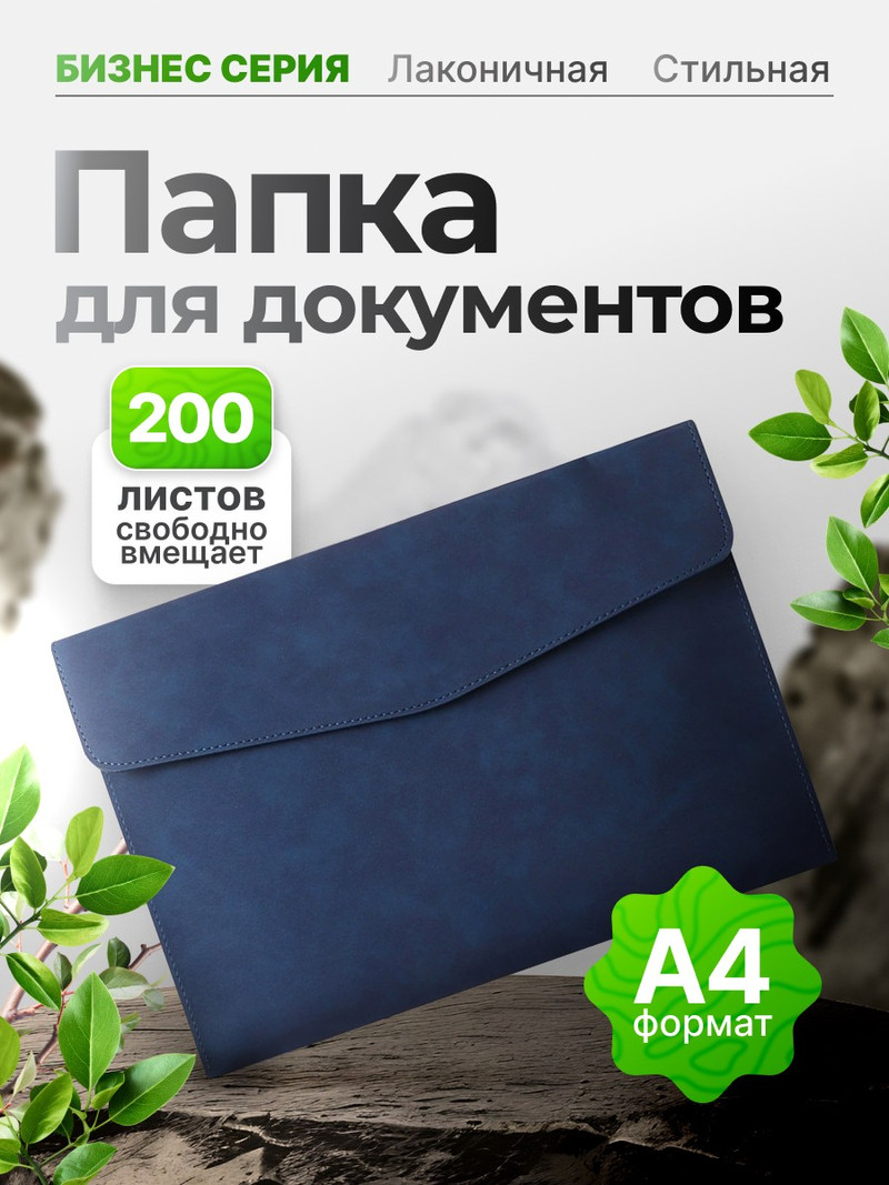 Папка — конверт формата А4 изготовлена из качественной экокожи и подходит для хранения документов, тетрадей и канцелярских принадлежностей. Вмещает до 120 листов формата А4 и совместима с меньшими размерами, включая А5. Магнитная кнопка обеспечивает надежное закрытие без риска повреждения содержимого. Благодаря мягким краям папка безопасна в использовании. Есть специальный вырез для крепления ручки с клипсой.