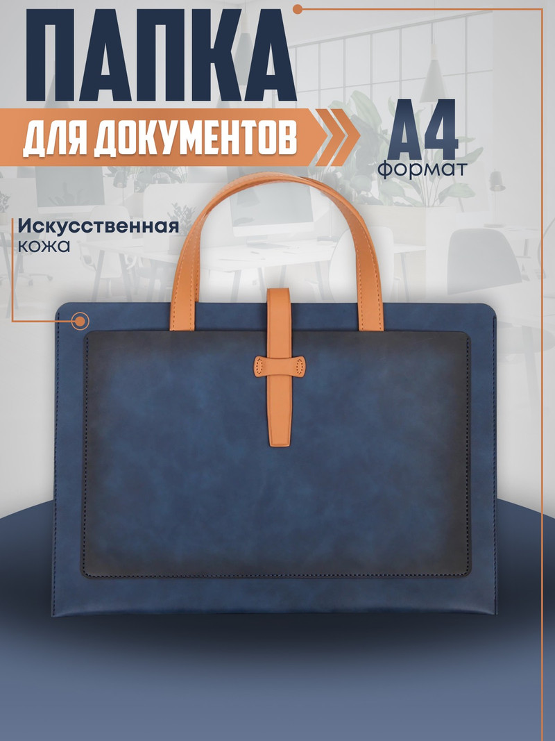 Размер: 36 х 25,5 см., Материал: Экокожа премиум-класса, Цвет: Темно-синий