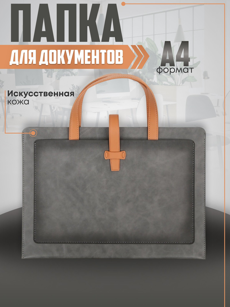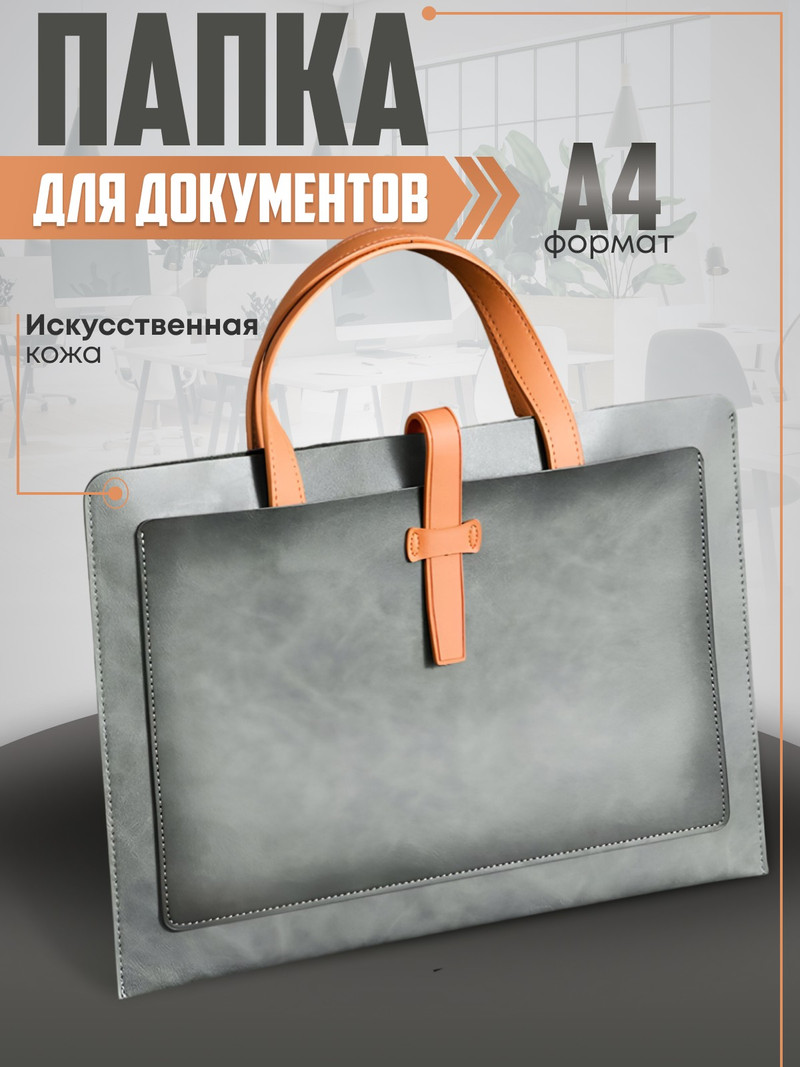 Размер: 36 х 25,5 см., Материал: Экокожа премиум-класса, Цвет: Серый