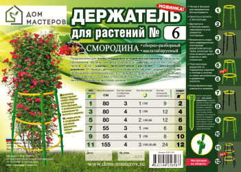 Чтобы купить Держатель для растений № 6 (Смородина) ДоМ-4-05 оптом по цене по запросу, свяжитесь с поставщиком. Компания поставщик — Дом Мастеров (ООО «ДОМ МАСТЕРОВ») из города Москва. Минимальная сумма оптового заказа: 20000 руб. Минимальная партия 100 шт. Доставка возможна самовывоз, транспортной компанией, курьером.