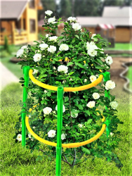 Монтаж любого держателя можно производить поэтапно по мере роста, расцвета куста, растения, цветка, путем наращивания конструкции по высоте и дополнитело усиливая поддерживающими поясами
