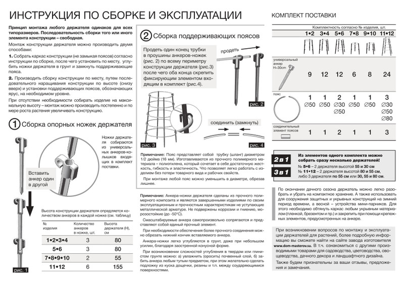 • монтажа нестандартных конструкций для поддержки кустовых плодовых и декоративных культур (опорные ножки-колышки “держателей для растений”);