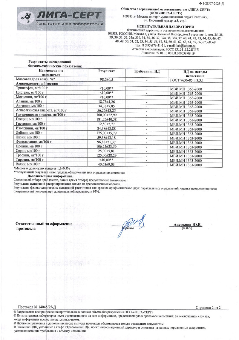 Он отличается чистым аминокислотным профилем, низкой молекулярной массой и высокой усвояемостью, а отсутствие искусственного разведения снижает риск примесей и делает сырьё особенно ценным для космоцевтики, БАДов и пищевых формул.