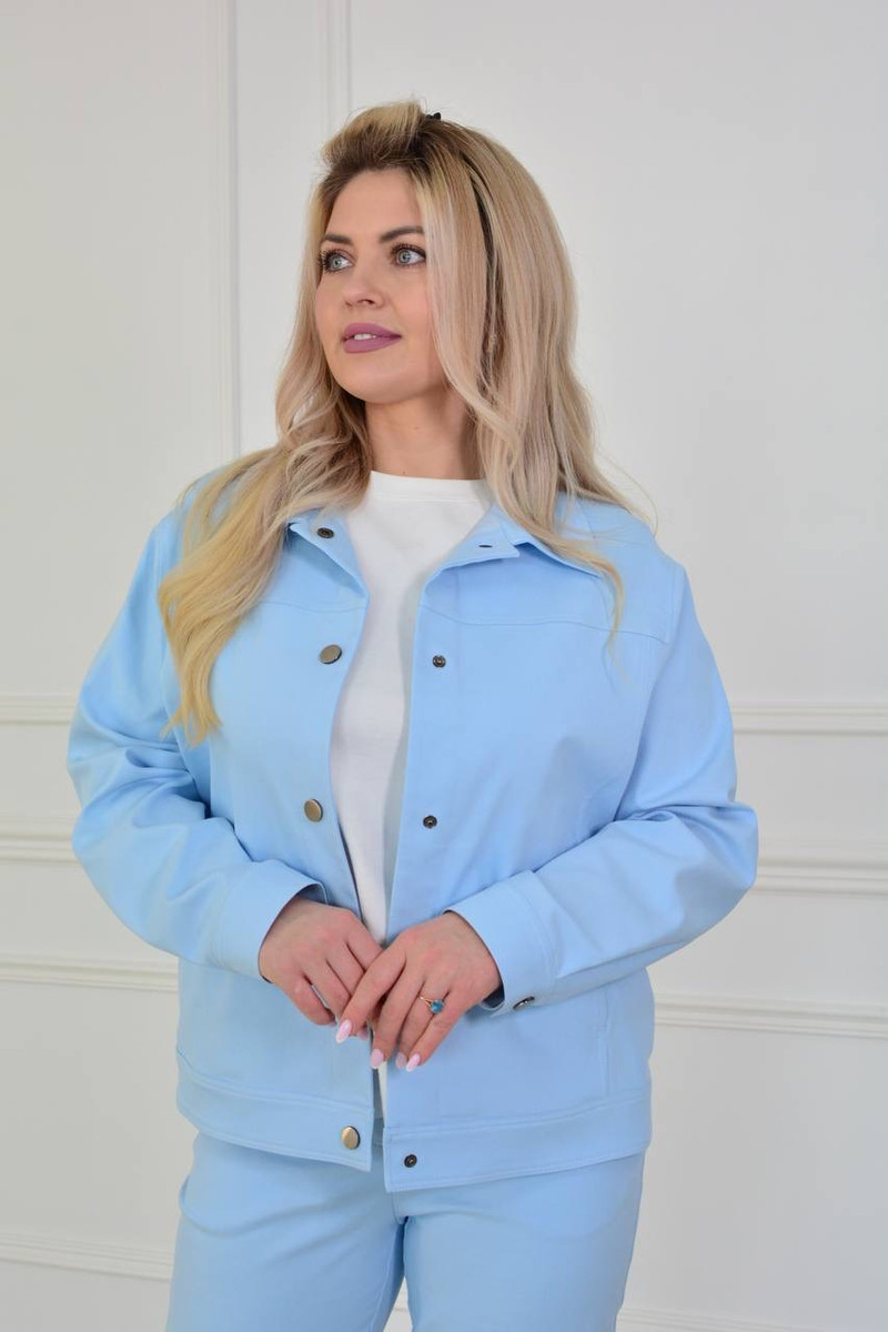 Жакет из хлопковой ткани в бежевом и голубом цвете.