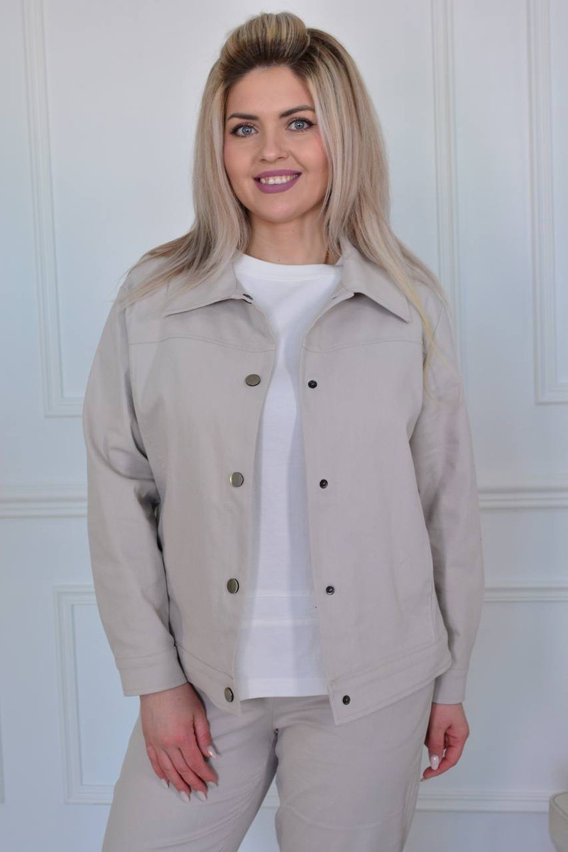 Жакет бежевый из хлопковой ткани.