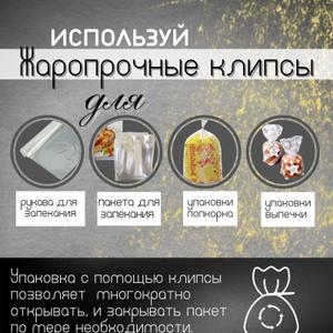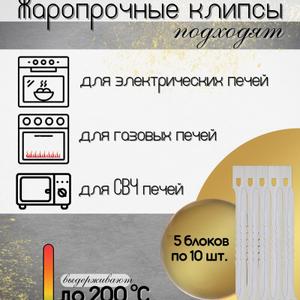 Жаропрочные клипсы бухта по 1000 блоков по 10 шт. Клипсы из термостойкой пленки для пакетов и рукава для запекания. Клипса может использоваться в электрических, газовых духовках и микроволновых печах при температуре до 200 С