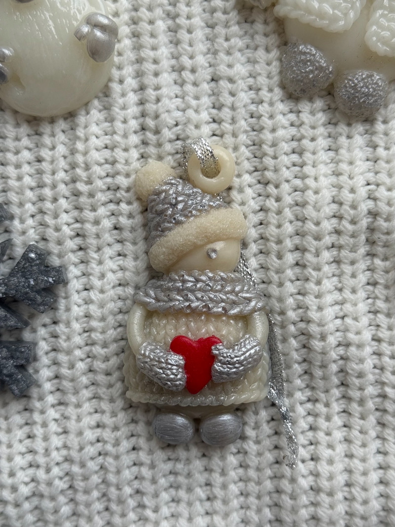Снеговичок с сердечком. Можно выполнить как из эпоксидной смолы, так и из гипса. Размеры 3,8 x 7,2 см при толщине готового изделия до 1,8 см — идеально для подвесок на ёлку или декоративную миниатюру.