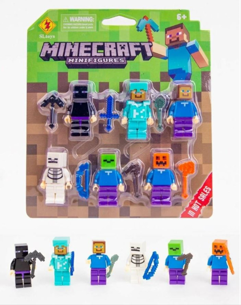 Упаковке с мини-фигурками в стиле Minecraft в количестве 6 штук.