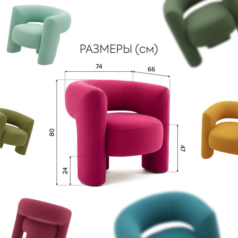 Это кресло представляет собой яркий и современный элемент интерьера, который привлекает внимание своей необычной формой. Оно выполнено из мягкого материала, что обеспечивает комфорт при использовании.