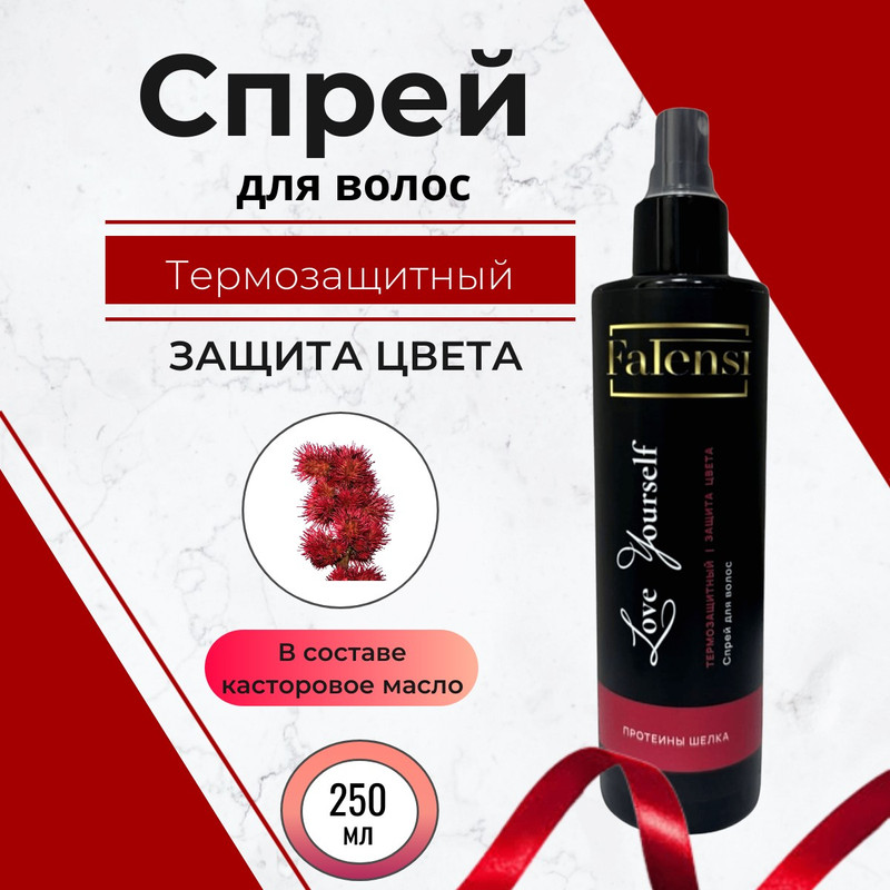 Обеспечьте своим волосам надежную защиту и благородный блеск с нашим термозащитным спреем для волос! Этот уникальный продукт специально разработан для тех, кто ценит красоту и здоровье своих локонов. Благодаря высокоэффективной формуле, спрей оберегает волосы от повреждений при использовании фенов, утюжков и плоек — защищая их от воздействия высоких температур и предотвращая пересушивание. В составе термозащитного спрея касторовое масло, которое питает и укрепляет волосы, делая их мягкими и послушными. Формула средства создает барьер, защищающий структуру волос от перегрева, одновременно обеспечивая легкое расчесывание и гладкость. Протеины шелка наполняют волосы жизненной силой, придавая им естественный блеск и сияние, сохраняя насыщенность цвета даже при частом использовании высокотемпературных приборов. Это средство идеально подходит для ежедневного ухода, сохраняя яркость окрашенных волос и делая их более стойкими к внешним воздействиям. Легкая текстура быстро распределяется, не утяжеляет и не оставляет жирных следов, делая укладку легче и приятнее. Не позволяйте тепловым приборам портить здоровье ваших локонов — воспользуйтесь нашим термозащитным спреем и наслаждайтесь красивой, гладкой, блестящей прической каждый день!