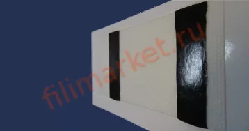 Лента представляет собой материал-основу: синтетическая ткань, обладающая способностью диффузии водяного пара, на которую нанесены с одной или двух сторон полосы клеевого материала, защищенные антиадгезионной пленкой.