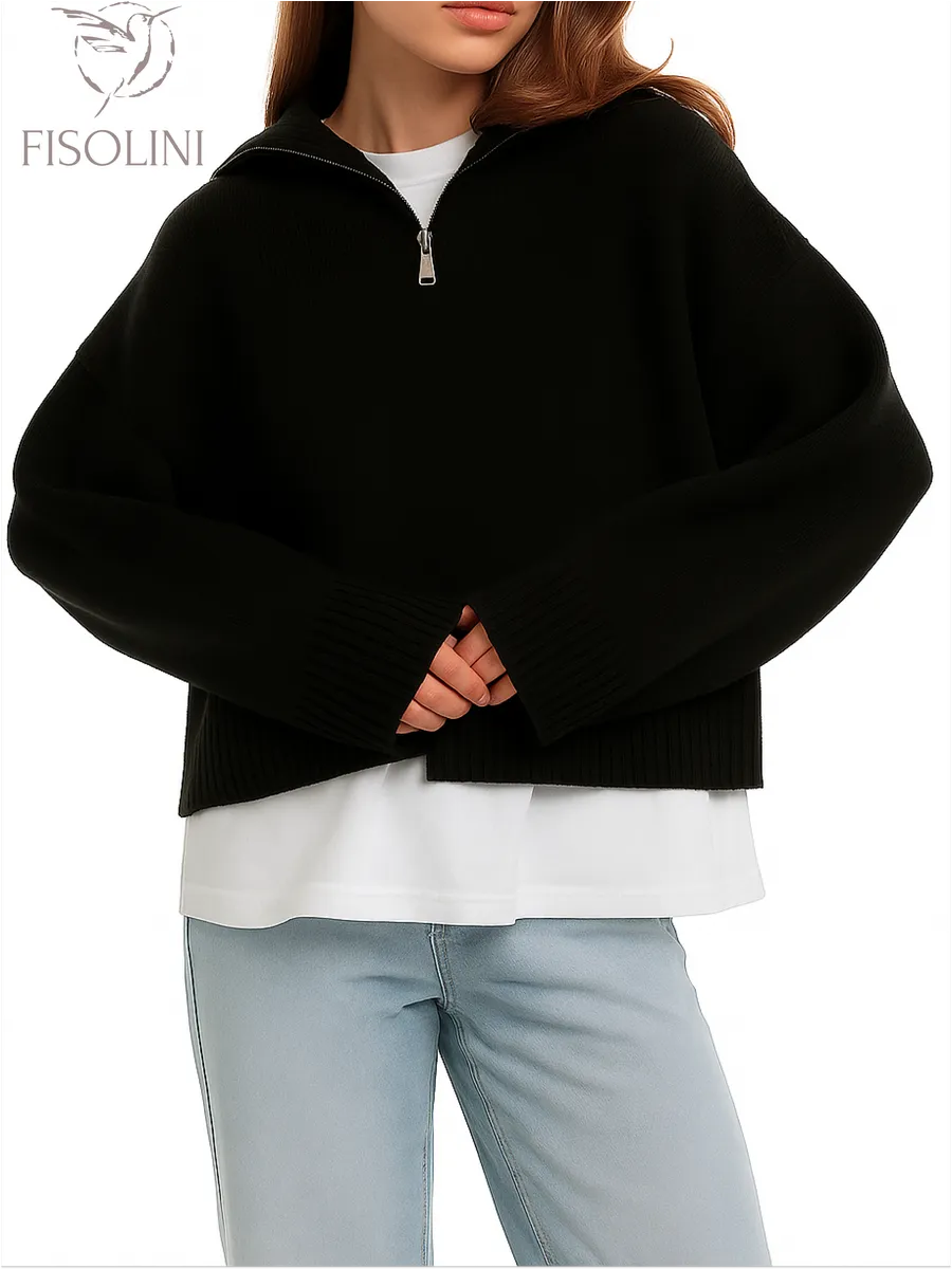 Представляем вам стильный свитер оверсайз с воротником-стойкой на молнии, который станет незаменимой вещью в вашем гардеробе! Этот уютный свитер, выполненный из мягкой и приятной к телу пряжи, подарит вам тепло и комфорт в прохладные весенние дни. Модель удлиненного кроя с однотонным дизайном в актуальных цветах, идеально подойдет как для повседневной носки, так и для офиса. Его свободный крой и большой размер создает ощущение легкости и комфорта, а мягкая фактура материала нежно обволакивает тело. Благодаря молнии вы легко сможете регулировать температуру и адаптировать свитер к любым погодным условиям. Этот свитер станет прекрасным дополнением к любому образу, оссобенно для беременных. Весной этот джемпер станет незаменимым элементом вашего стиля, создавая уютные и модные образы в школу подросткам.