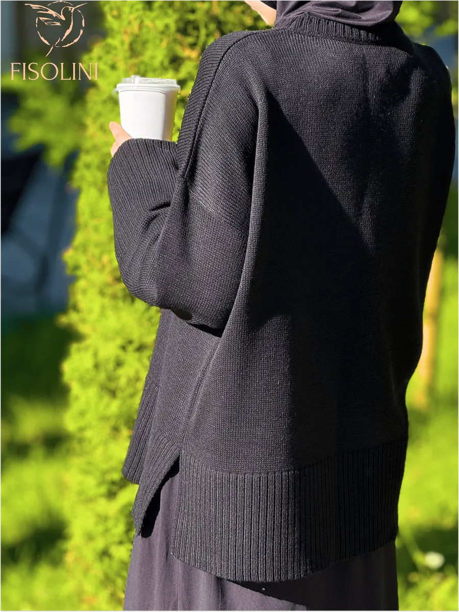 Свитер вязаный оверсайз от Fisolini – это стильное и комфортное решение для прохладной погоды. Модель выполнена из мягкого акрила, который приятен к телу и быстро сохнет. Свитер имеет удлиненный крой оверсайз с большими размерами, что делает его идеальным вариантом для беременных и женщин, предпочитающих свободный силуэт. Благодаря своей универсальности, свитер подходит как для повседневной носки, так и для создания стильных образов на выход. Модель представлена в нескольких оттенках черного, что позволяет подобрать вариант на любой вкус. Свитер Fisolini – это сочетание комфорта, стиля и практичности, которое станет незаменимым элементом вашего гардероба.