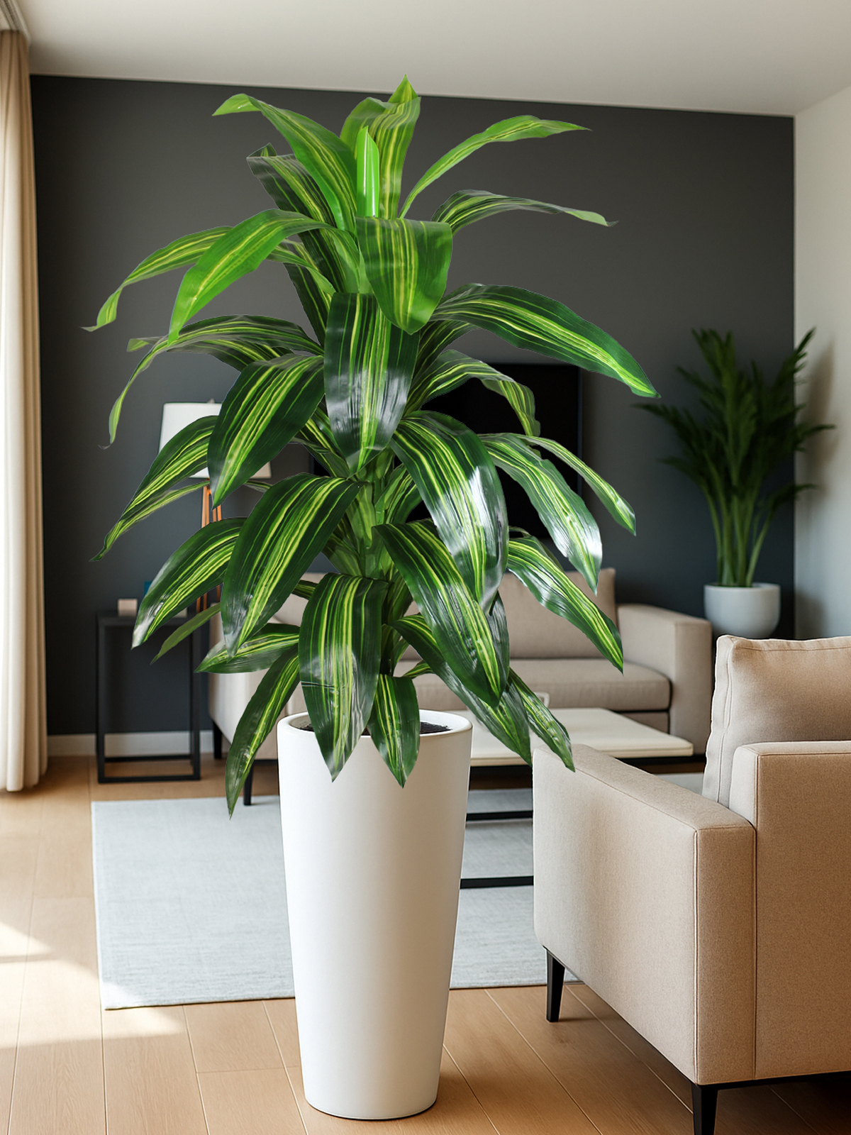 Искусственная драцена Королевская в белом горшке от бренда ФитоПарк станет настоящим украшением вашего интерьера. Этот декоративный куст придаст вашему дому или офису особенную атмосферу и создаст эффект присутствия живых растений без необходимости ухода за ними.Драцена Королевская декоративная - это уникальное сочетание красоты и практичности. Она отлично подходит для создания фитодизайна в любом помещении, будь то дом, офис или магазин. Это искусственное зеленое растение будет служить вам долгие годы, придавая интерьеру элегантность и стиль.Листочки с ярко выраженной полоской делают этот куст оригинальным, а латексные листья создают полное ощущение живого растения. Не требует особого ухода, не боится влаги, можно ставить в ванную комнату, к бассейну и в сауну. После получения надо красиво расправить листья на нужную ширину и наслаждаться этим прекрасным цветком!Размер растения в белом техническом кашпо ВхШхГ: 110х70х70 см. Кашпо белое диаметр 18см.Большая просьба заказывать наши изделия заранее, доставка может быть более долгой, чем обычно.Если данный товар не доставляется в Ваш регион или его нет в наличии, Вы можете обратиться к нашему менеджеру.