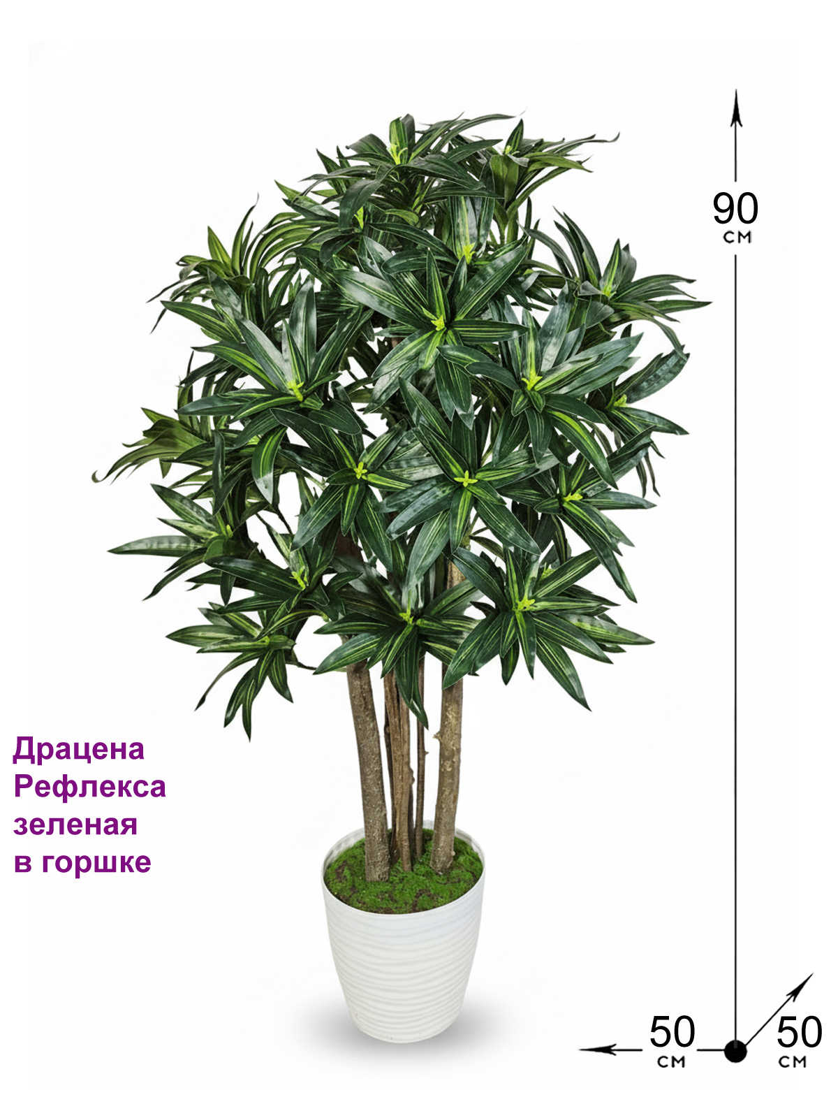 Размер искусственного растения в кашпо ВхШхГ: 90х50х50 см.
