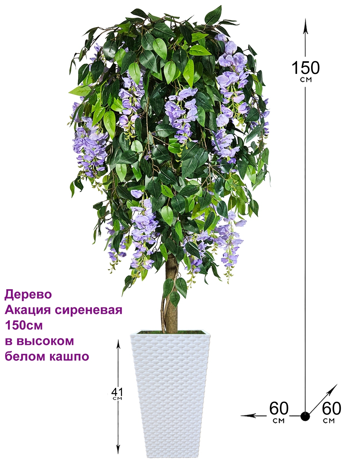 Искусственное дерево Акация сиреневая 150см в высоком белом кашпо 41см от ФитоПарк – это прекрасное решение для декора вашего дома. Это цветущее дерево для дома интерьера, которое можно приобрести прямо сейчас. Цветущая Глициния в кашпо, высокие искусственные деревья для интерьера дома – это модные тенденции в дизайне комнаты, гостиной, спальни или кухни.Искусственное дерево Акация высотой 150см привнесет в ваш дом атмосферу природы и уюта. Оно станет настоящим украшением вашего интерьера, добавив нотки красоты и стиля в каждую комнату. Чудесный выбор для тех, кто хочет создать уютную атмосферу в своем доме.Кашпо белого цвета с высотой 41 см идеально сочетается с цветами сиреневого оттенка и добавляет изысканности. Оно подчеркнет красоту искусственного дерева Акация, придавая ему элегантность. Белый цвет кашпо гармонично впишется в любой интерьер, дополнив его стиль и создавая единство дизайна.Размер дерева в кашпо ВхШхГ: 150х60х60см. Размер кашпо ВШГ: 41x22x22см.Большая просьба заказывать наши изделия заранее, доставка может быть более долгой, чем обычно.Если данный товар не доставляется в Ваш регион или его нет в наличии, Вы можете обратиться к нашему менеджеру.